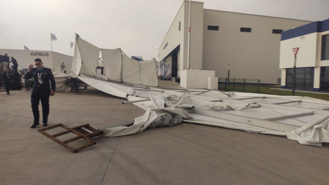 En un video, compartido a través de redes sociales, se observa cómo la carpa del evento da al menos un giro en el aire y cae contra algunos visitantes y personal logístico que trató de sujetar una lona, donde se exhibían las marcas de los participantes en el evento.