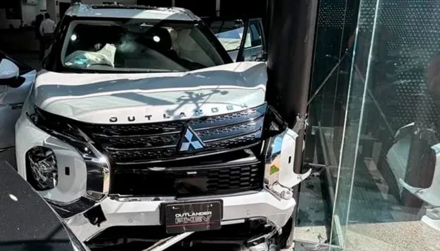 La mujer llegó a la agencia con la intención de adquirir un vehículo. Durante la asistencia del agente de ventas al mostrar la unidad, una Mitsubishi modelo Outlander, de color blanco, la fémina encendió la SUV, aparentemente confundiendo la rueda de velocidades con el control de volumen del sistema de audio. Este error provocó que el vehículo se moviera sin control y, posteriormente, impactara contra un poste que sostiene la estructura del edificio.