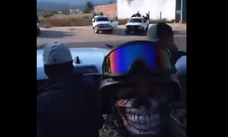 En la breve grabación que comenzó a circular en redes sociales esta semana se observa  a tres camionetas de fondo Chevrolet, una Jeep y otra sin identificar, con hombres armados en las cabinas y bateas de las camionetas, mientras se aprecian otras dos camionetas sobre las que están abordo quienes graban.