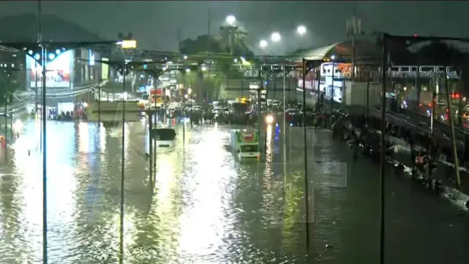Calzada Zaragoza queda anegada tras fuerte lluvia en Iztapalapa y Edomex